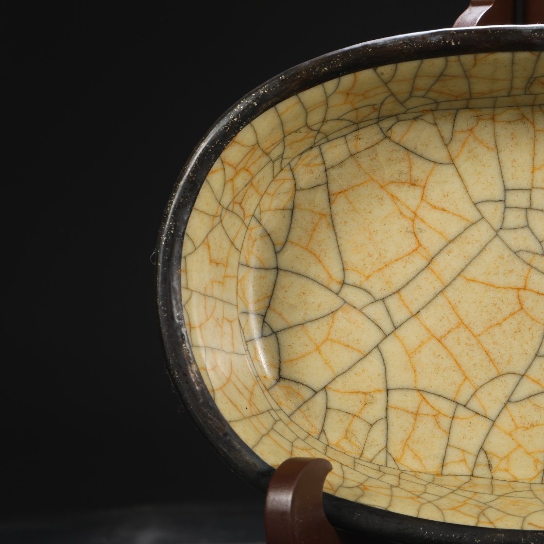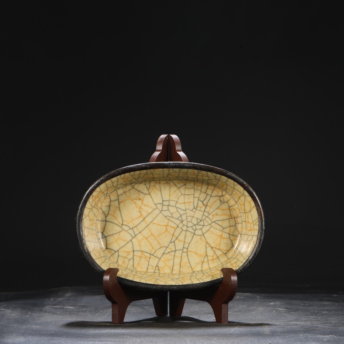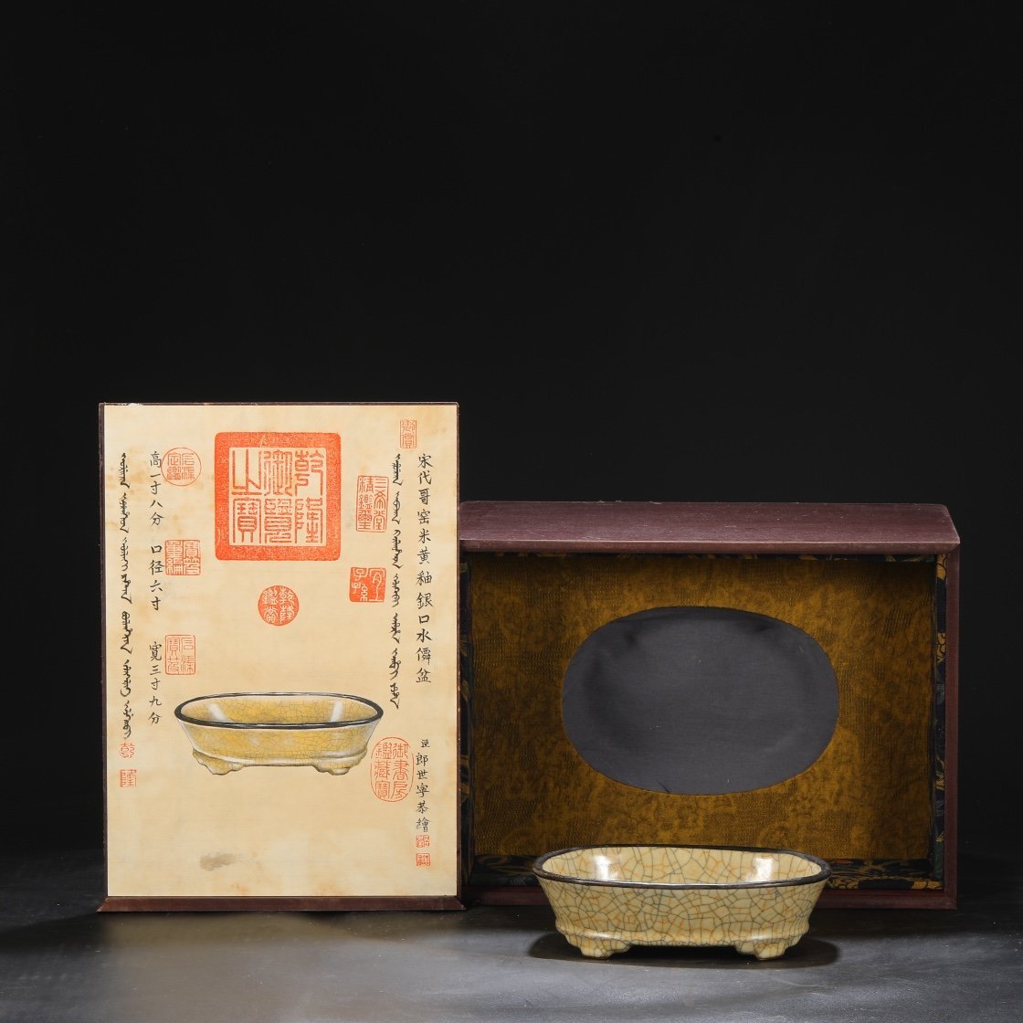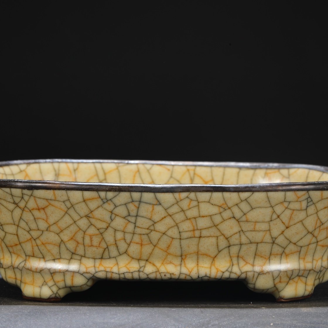 Beige glaze silver mouth narcissus basin from the Ge kiln of the Northern Song Dynasty, old collection, “Qianlong imperial title”