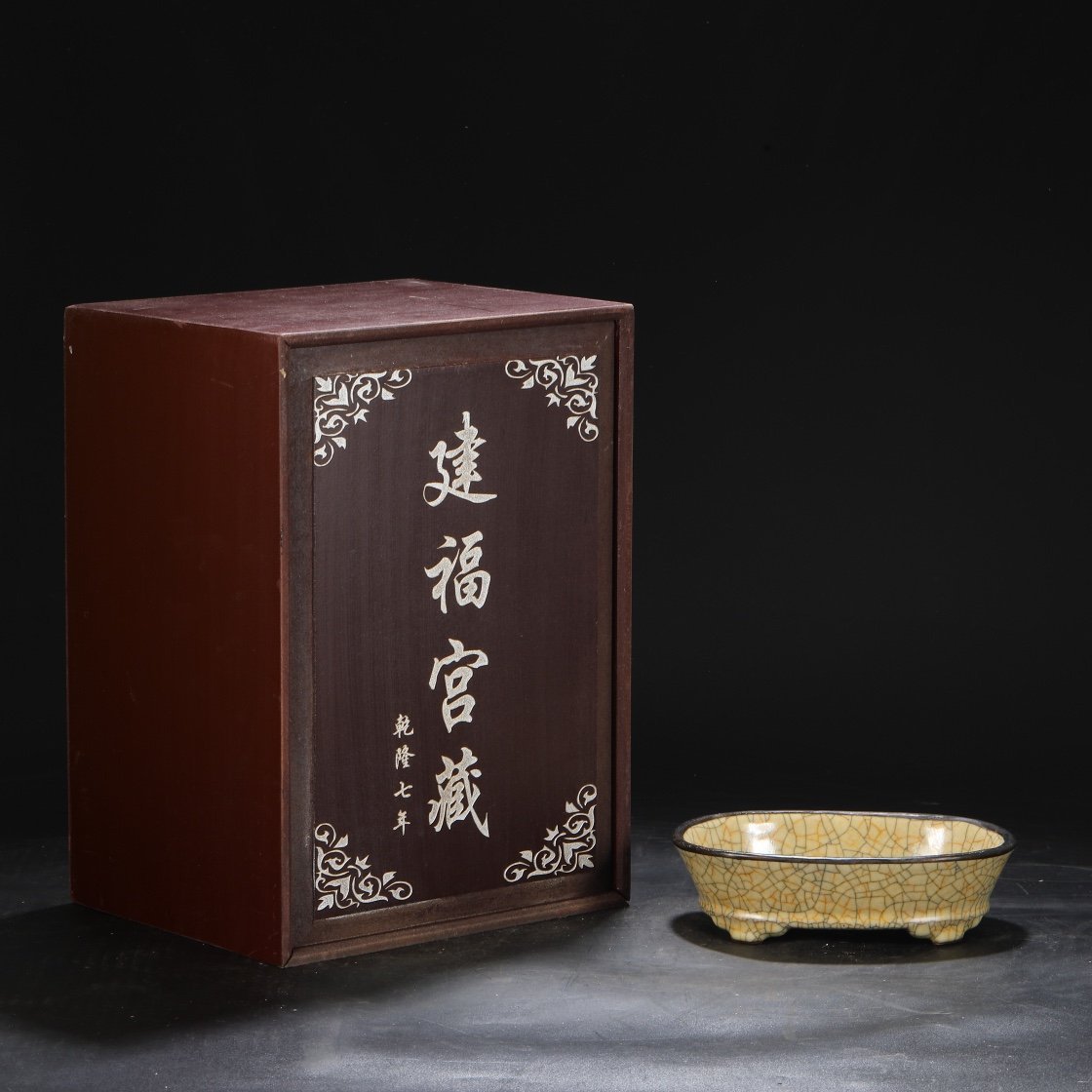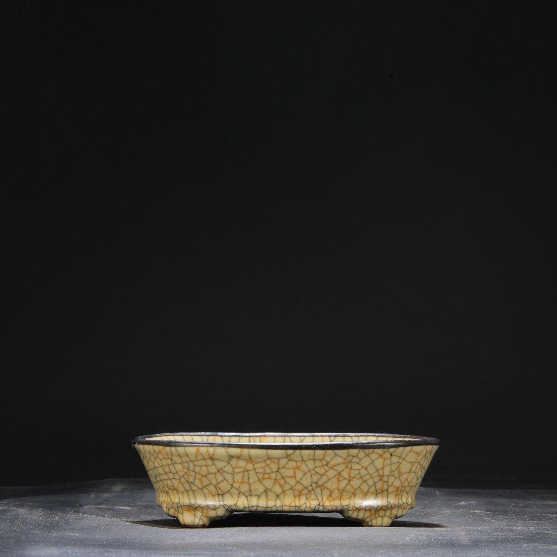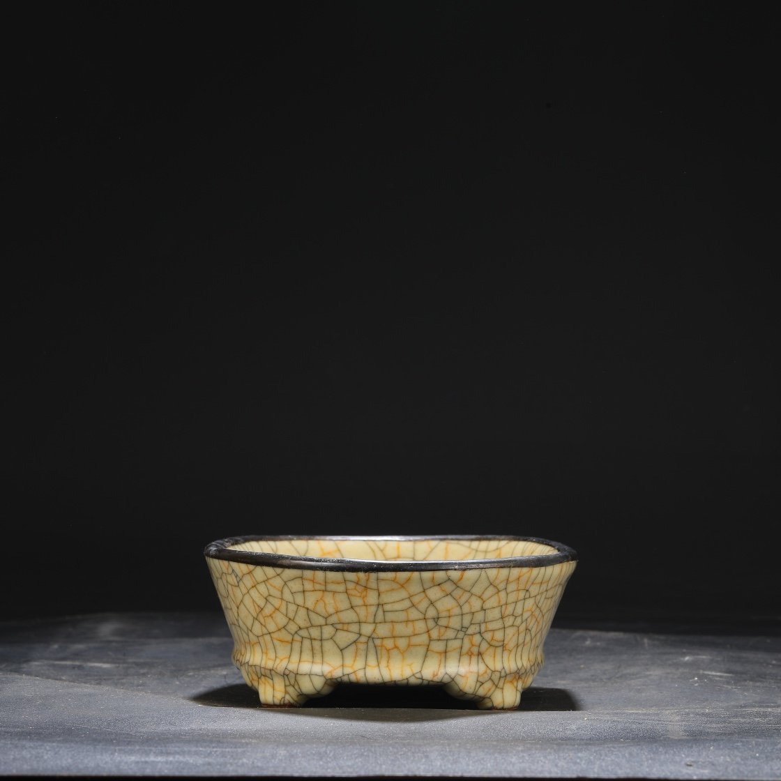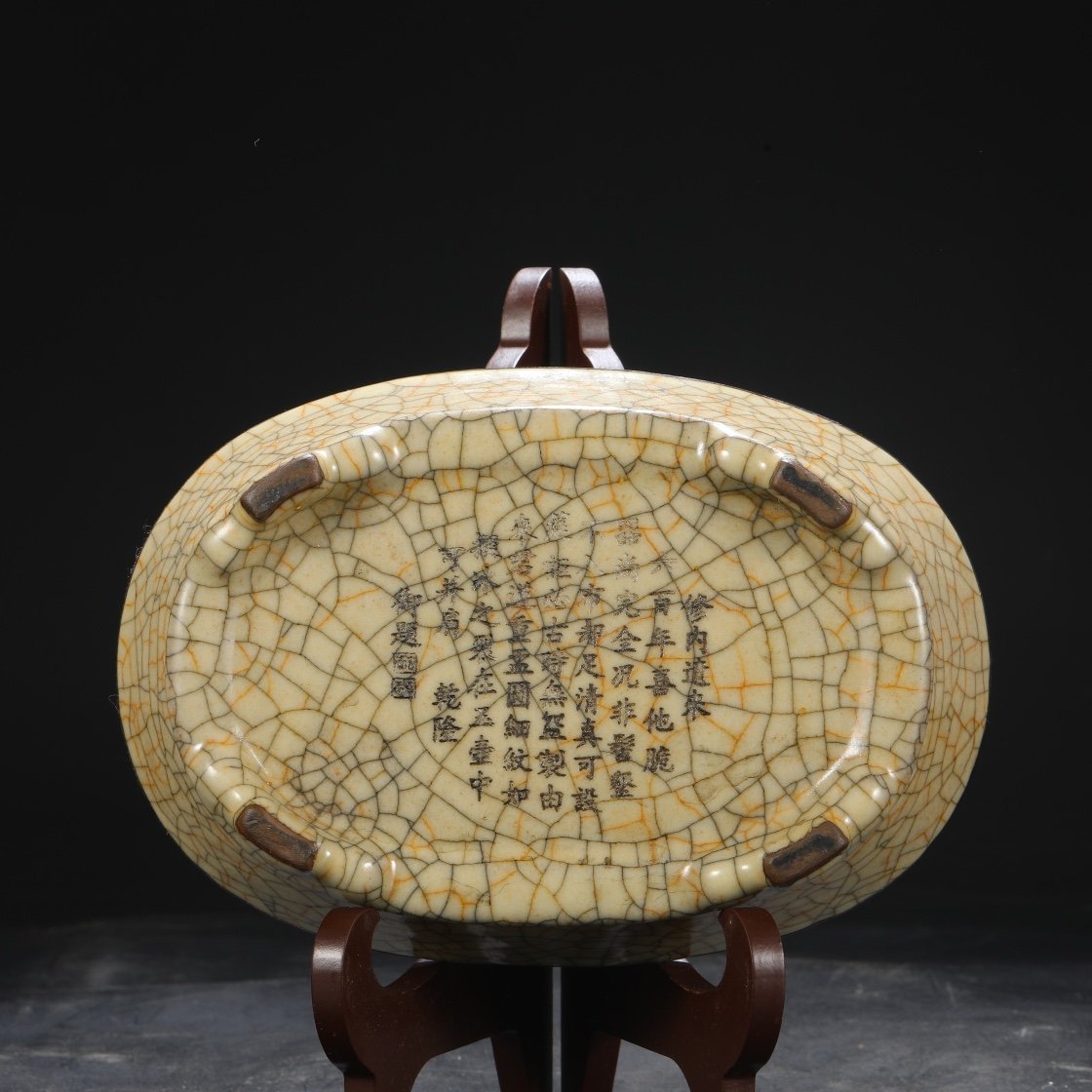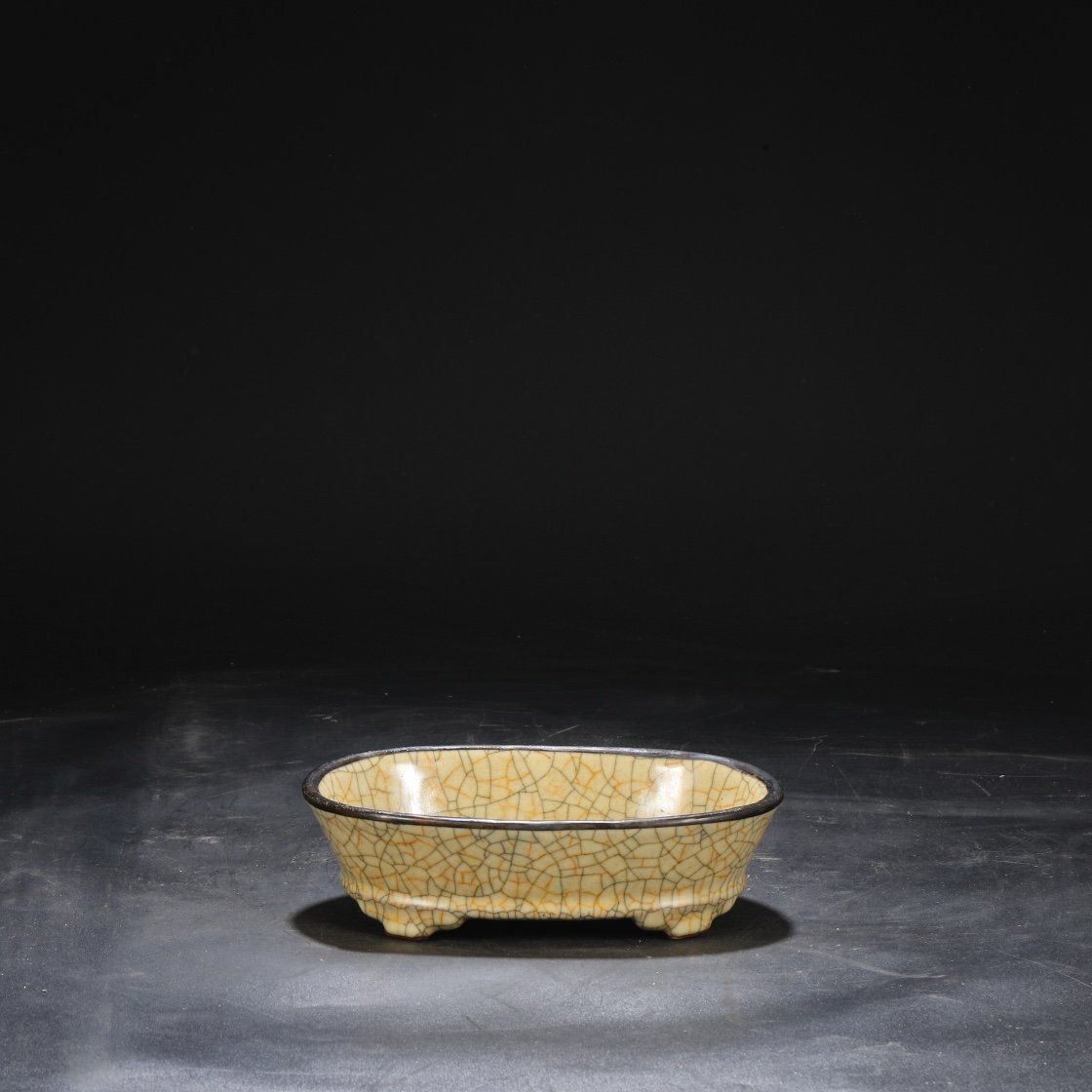 Beige glaze silver mouth narcissus basin from the Ge kiln of the Northern Song Dynasty, old collection, “Qianlong imperial title”