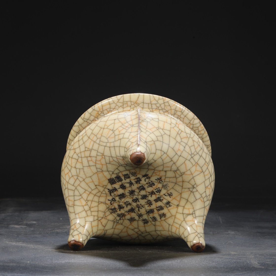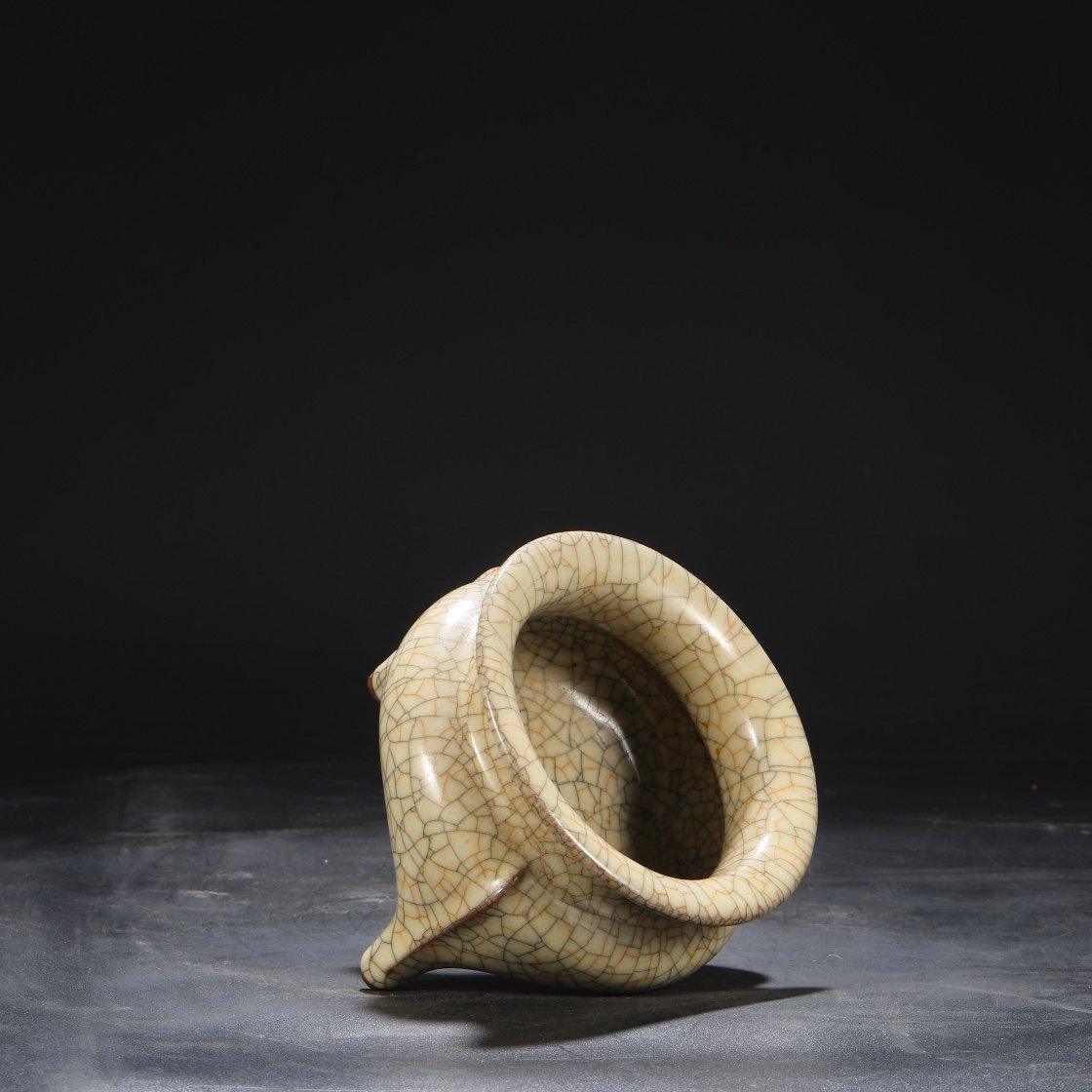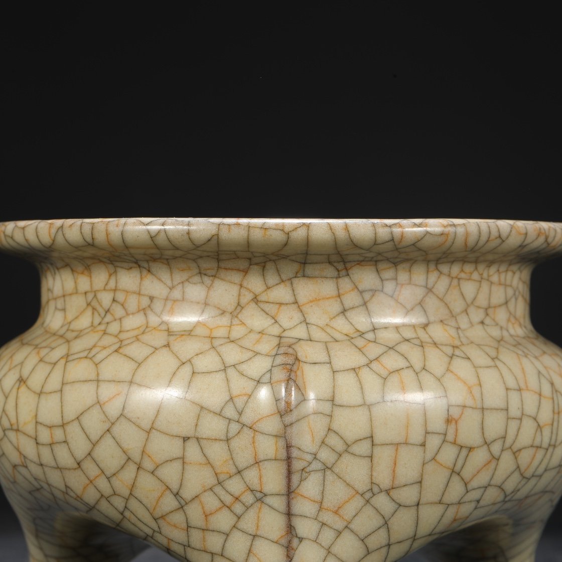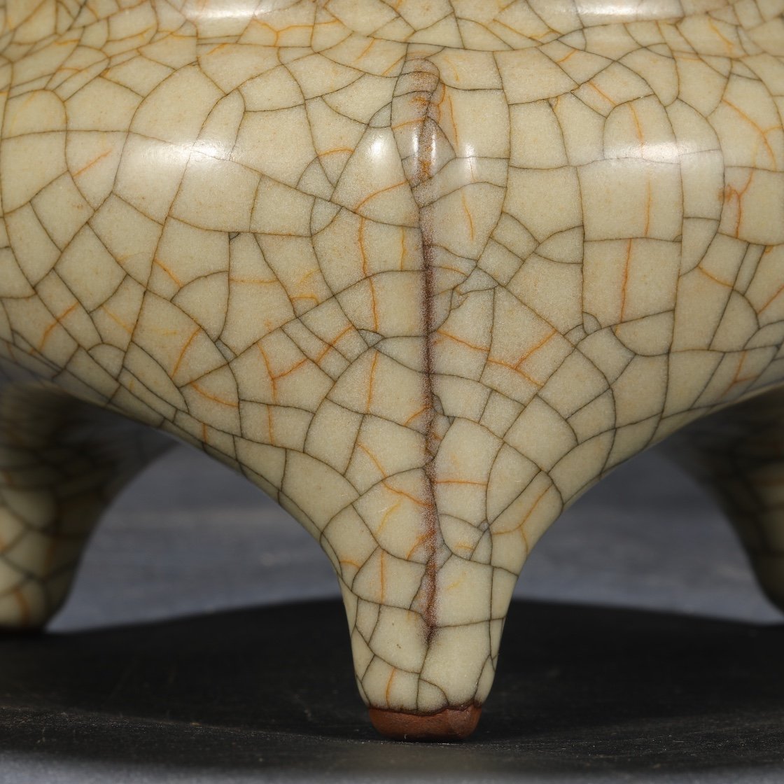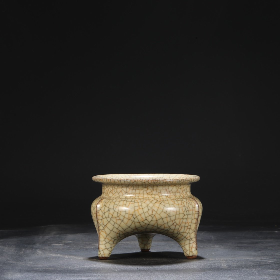 Beige-glazed imperial tripod furnace from the Ge kiln of the Northern Song Dynasty, inscribed with the inscription of Emperor Qianlong.