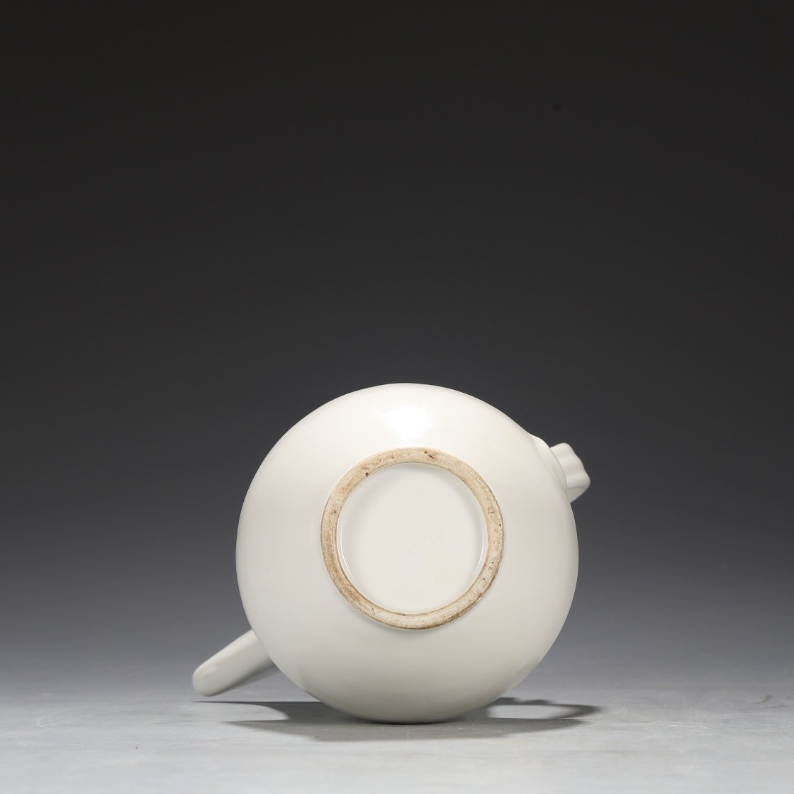 Old collection of Ming Dynasty Yongle sweet white glaze dark carved three-dot pattern monk hat pot