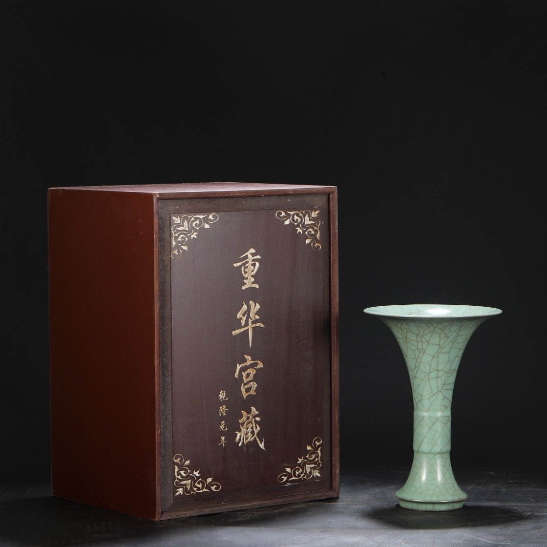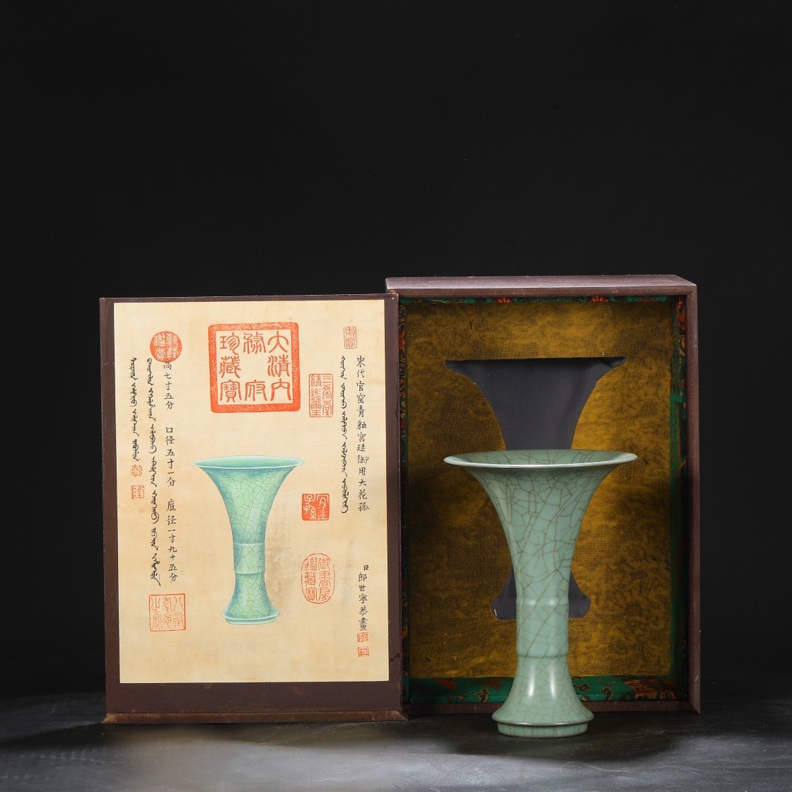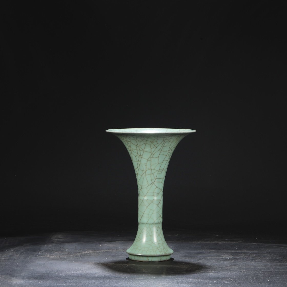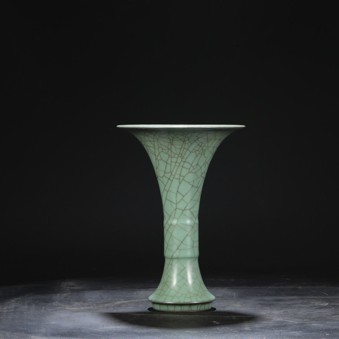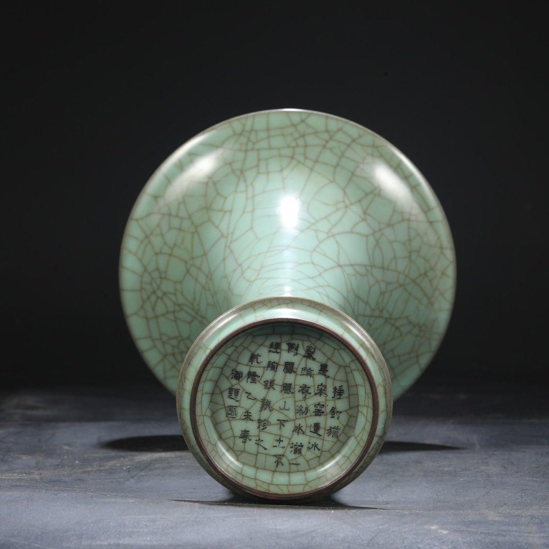 Old collection of Southern Song Dynasty official kiln green glaze imperial court large flower solitary “Qianlong imperial title”