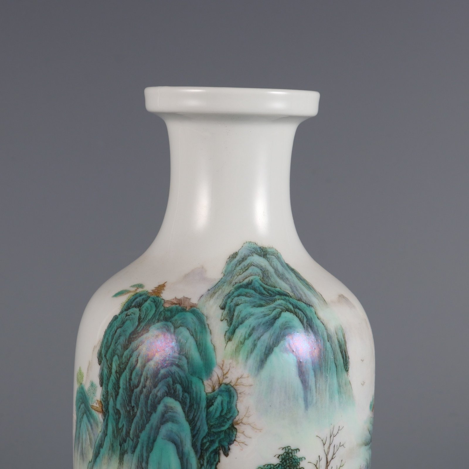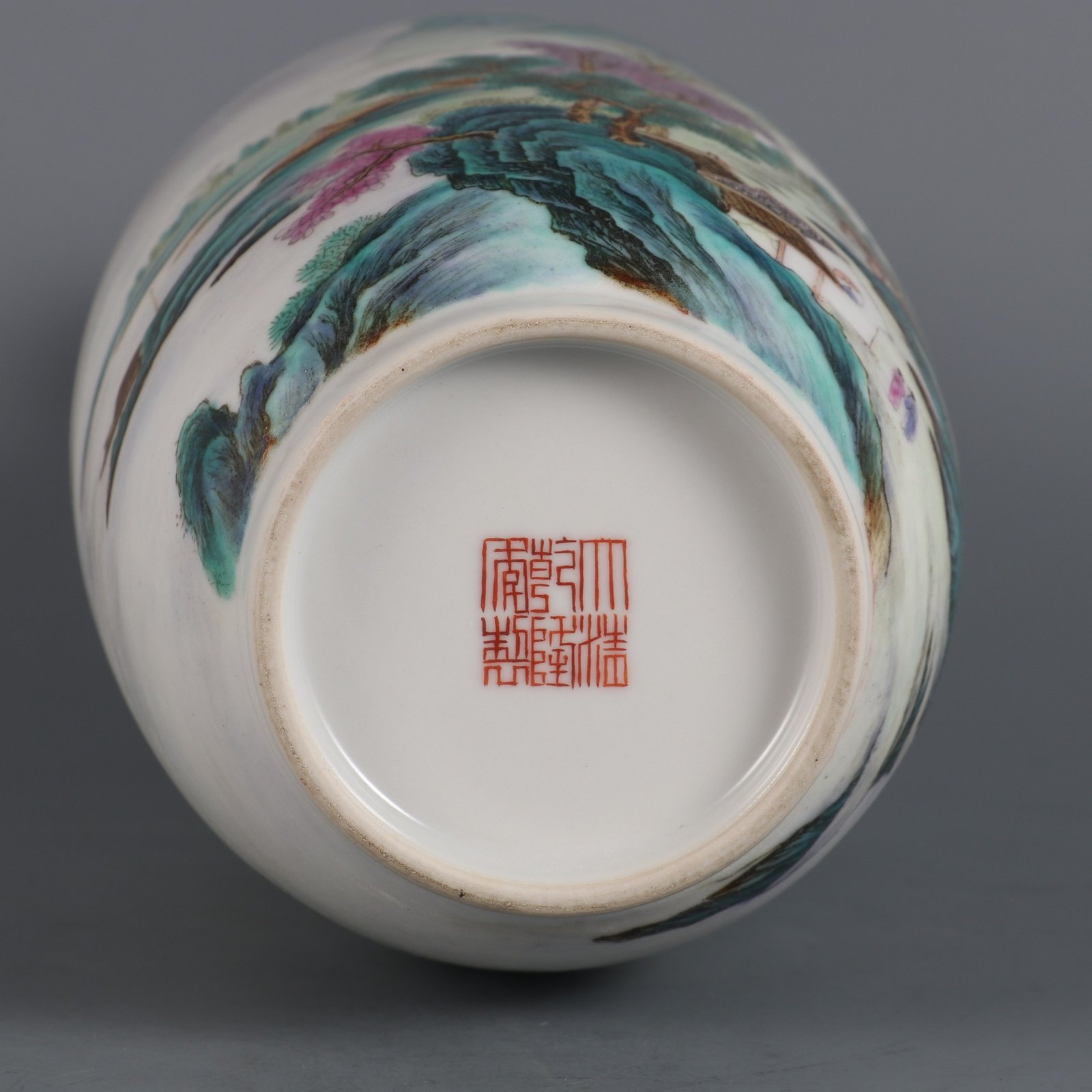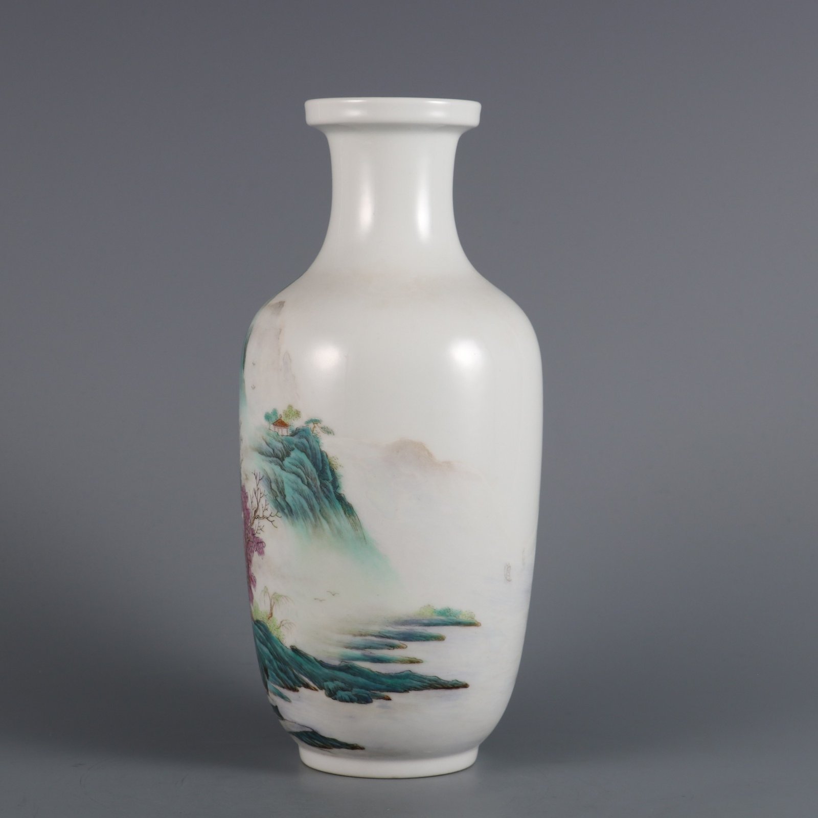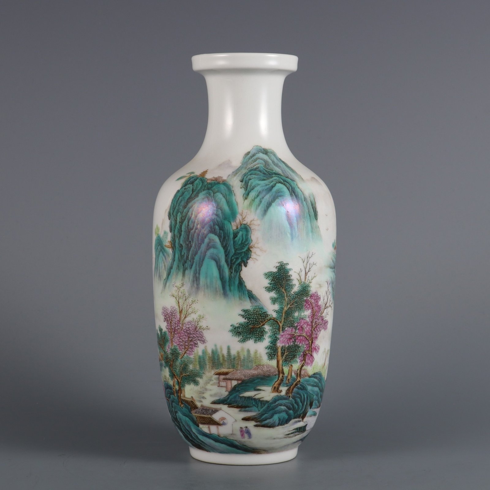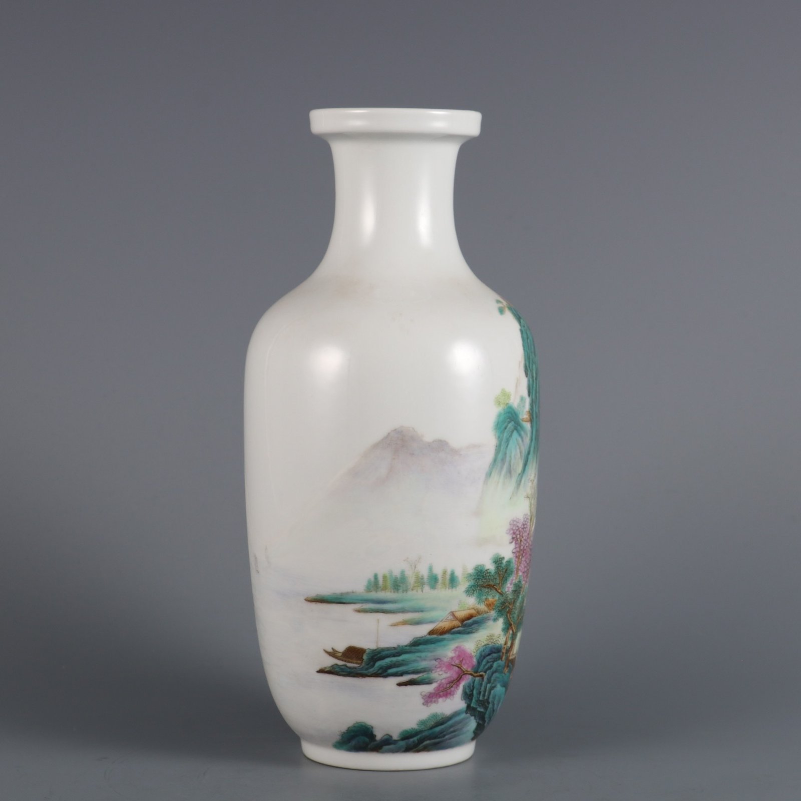 Qing Dynasty Qianlong period pink enamel landscape figure Guanyin bottle