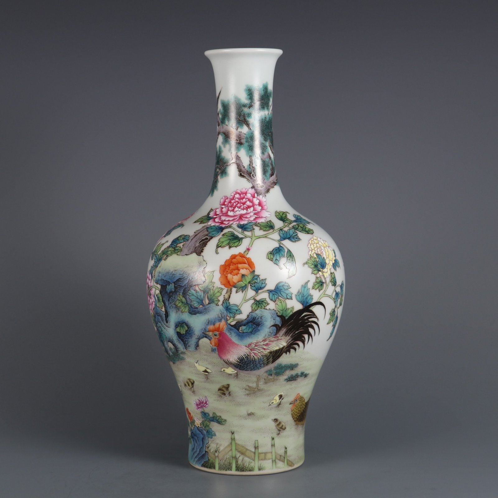 Qing Dynasty Qianlong period powder enamel family happy poem appreciation bottle